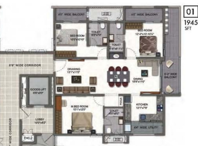 | 3 BHK | 1945 Sqft | Rs. 1.46 Cr |