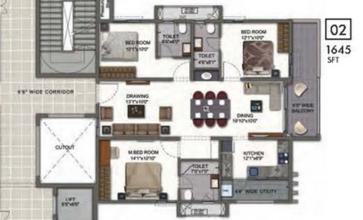 | 3 BHK | 1645 Sqft | Rs. 1.23 Cr |