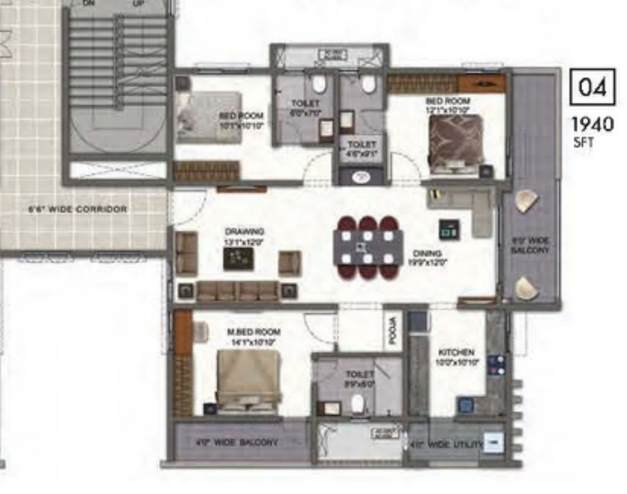 | 3 BHK | 1940 Sqft | Rs. 1.46 Cr |