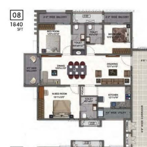 | 3 BHK | 1840 Sqft | Rs. 1.38 Cr |